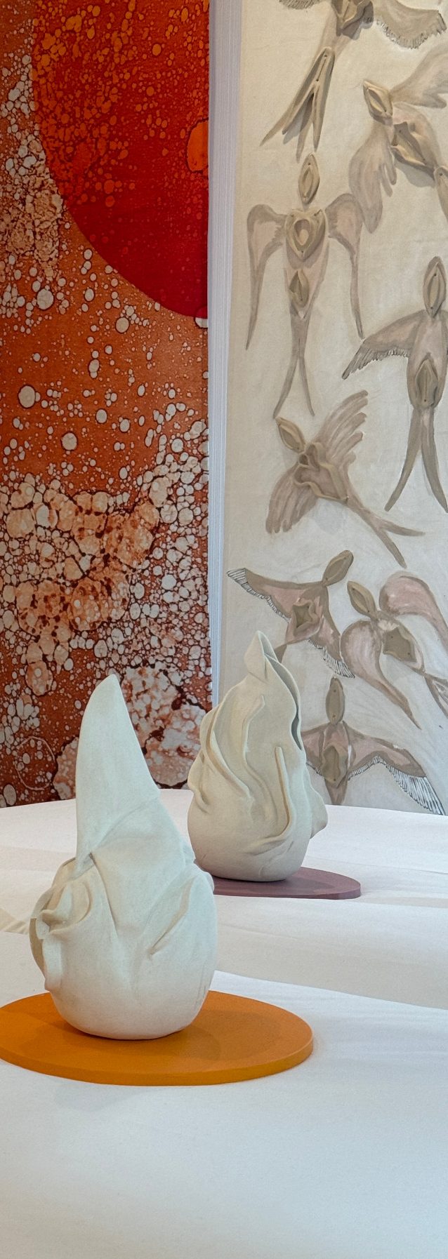 The works, in small and medium formats, are integrated into the space as part of a close and sensory experience, inviting visitors to pause, observe and inhabit art through the everyday.